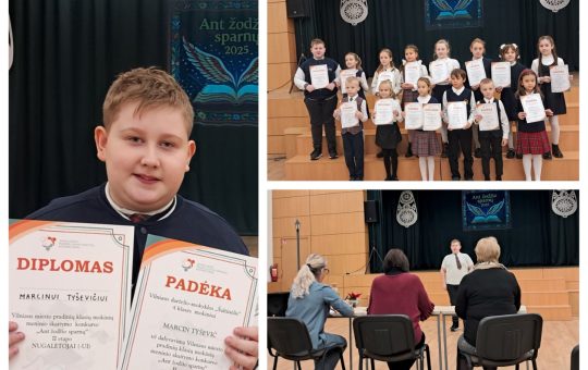 Vilniaus miesto 1-4 klasių mokinių meninio skaitymo konkurse „Ant žodžio sparnų“ 4A klasės mokinys Marcin Tyševič...